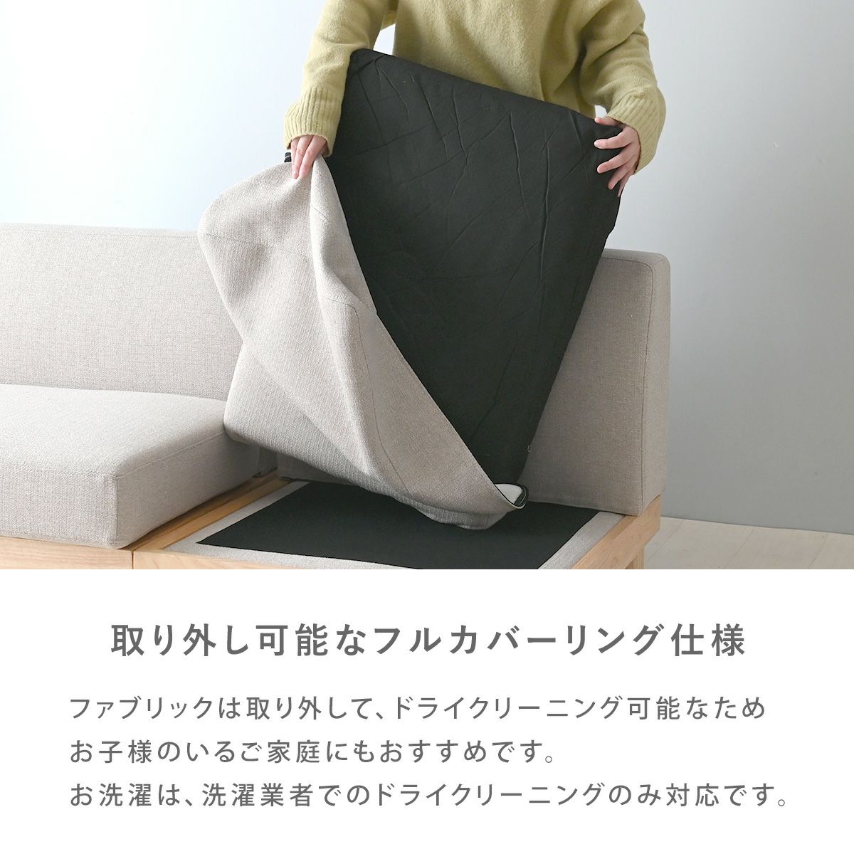 カバーは取り外し可能(洗濯業者でのドライクリーニングのみ対応)