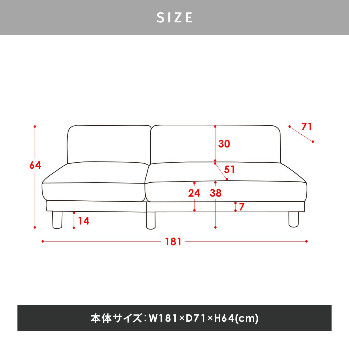 サイズ 本体サイズ:W181×D71×H64(cm)