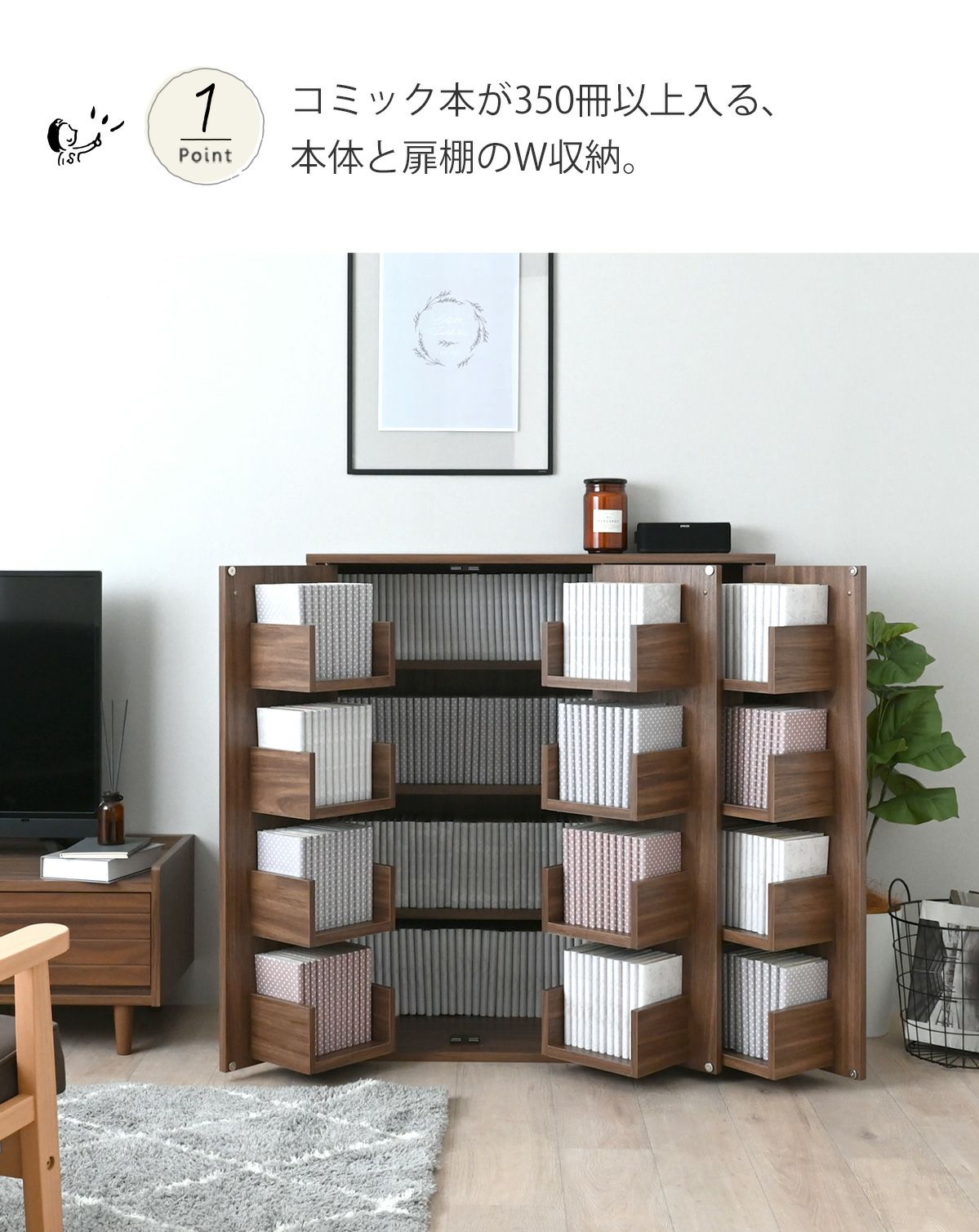 扉を開くと圧巻の収納スペース。大容量のコミック収納。