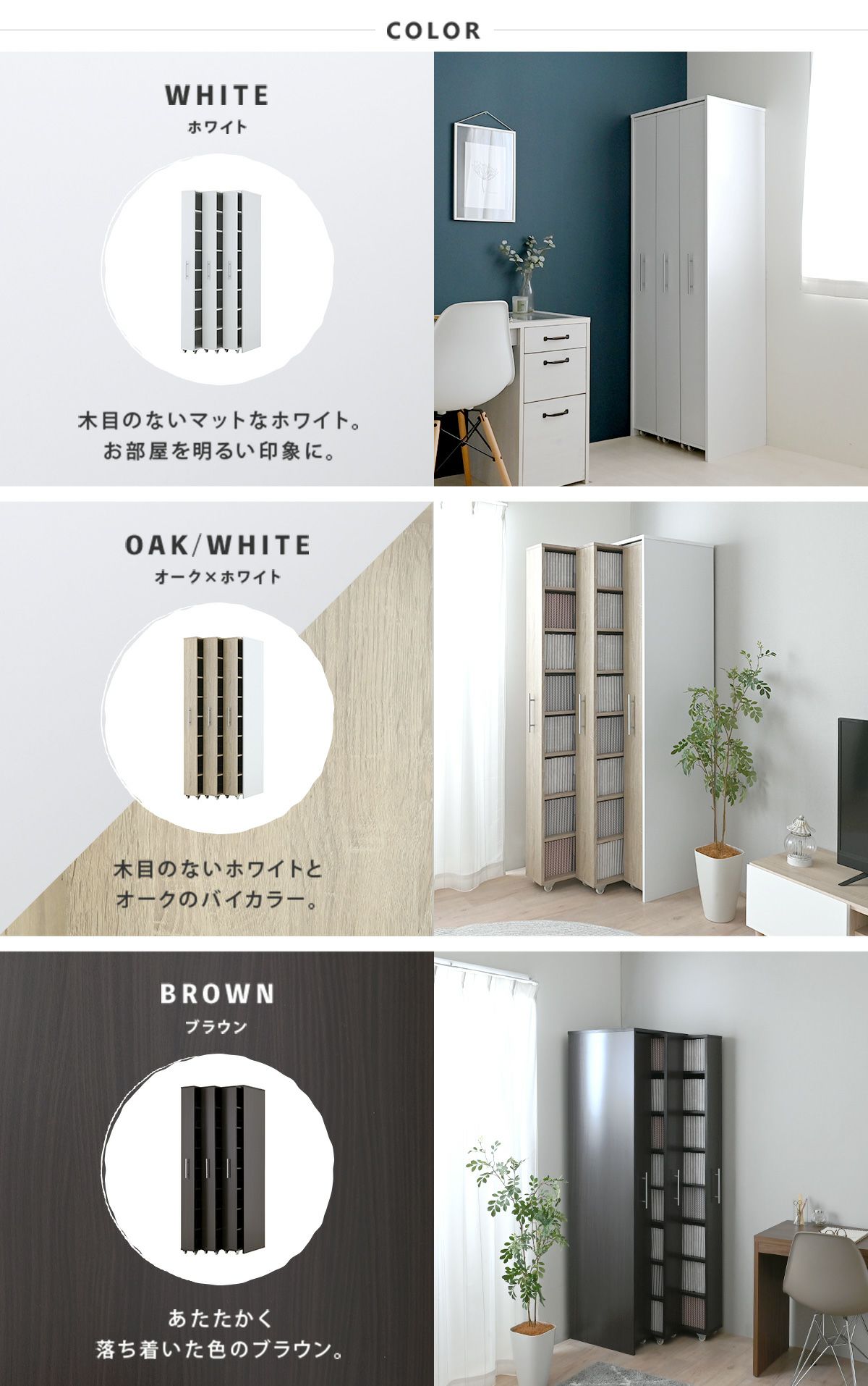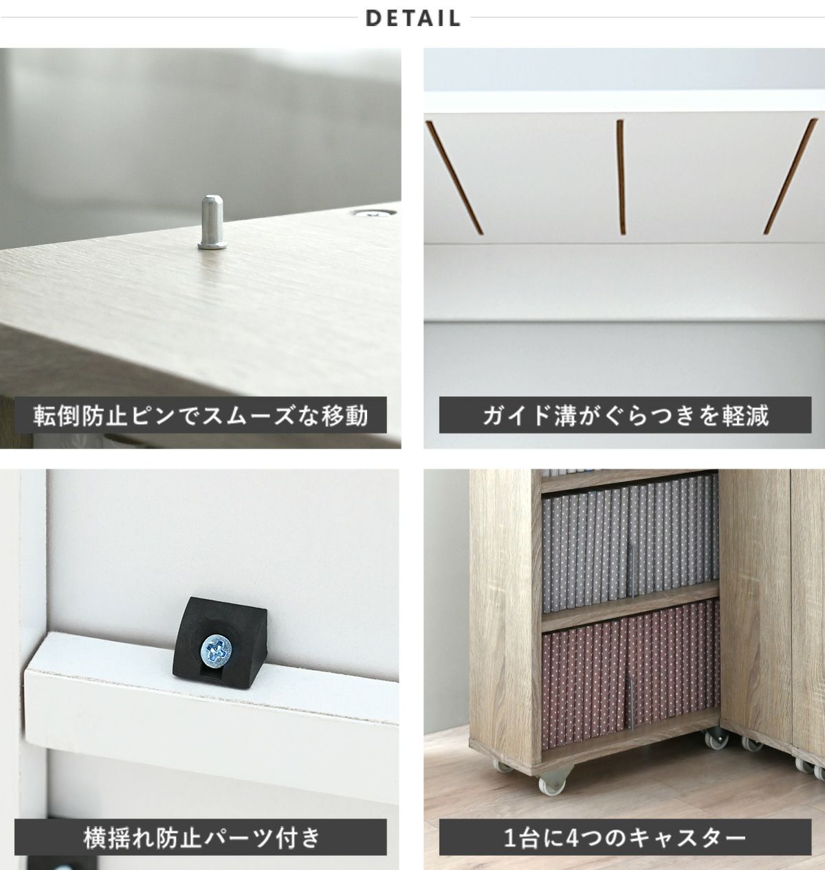 他の画像を見る 本棚 スリム 大容量 おしゃれ 隠す収納 スライド式 3連 ハイタイプ 幅58 書棚 コミックラック CDラック キャスター付き 漫画 文庫本 シンプル 北欧 ホワイト 木製 隙間 リビング 書斎 3連スリムラックセット ハイタイプ お気に入りに登録する 当店特別価格 ¥ 35,200 税込 ホワイト ベージュ ブラウン