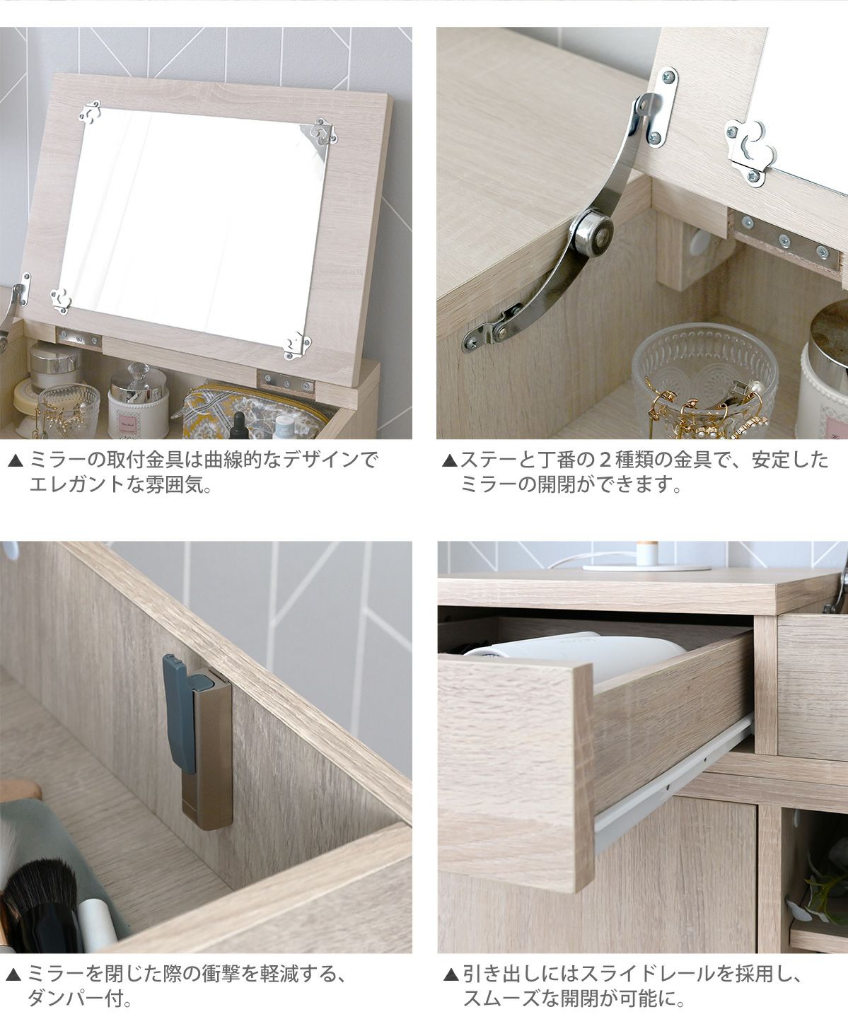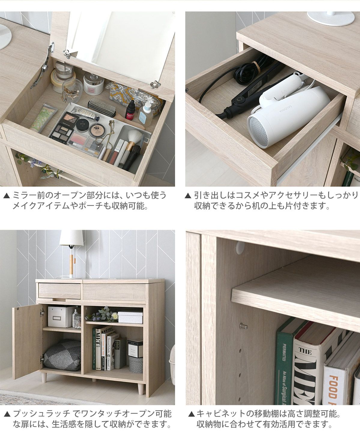 他の画像を見る ドレッサー コンパクト おしゃれ デスク 可愛い 伸縮 机 兼用 収納 北欧 韓国 メイク台 化粧台 鏡台 ミラー 幅80cm かわいい ナチュラル 木製 伸縮デスクドレッサー NC80-80D お気に入りに登録する 当店特別価格 ¥ 26,990 税込 ベージュ