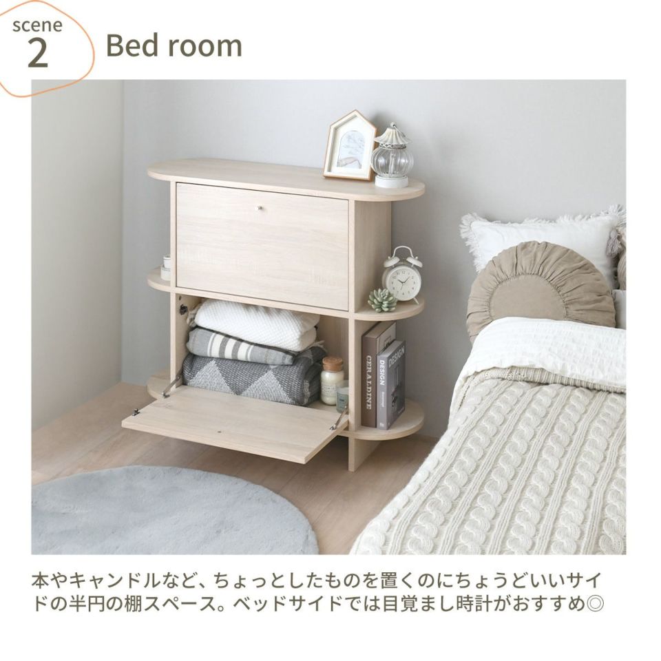 曲線と直線のバランスが心地よく、たくさん収納することができます。日用品など生活感のあるものもおしゃれに収納することができ、ナチュラルなデザインがお部屋になじみます。ソファやベッドサイドにもちょうどいいサイズ感で、韓国インテリアがお好きな方にもおすすめのアイテムです。