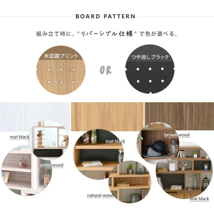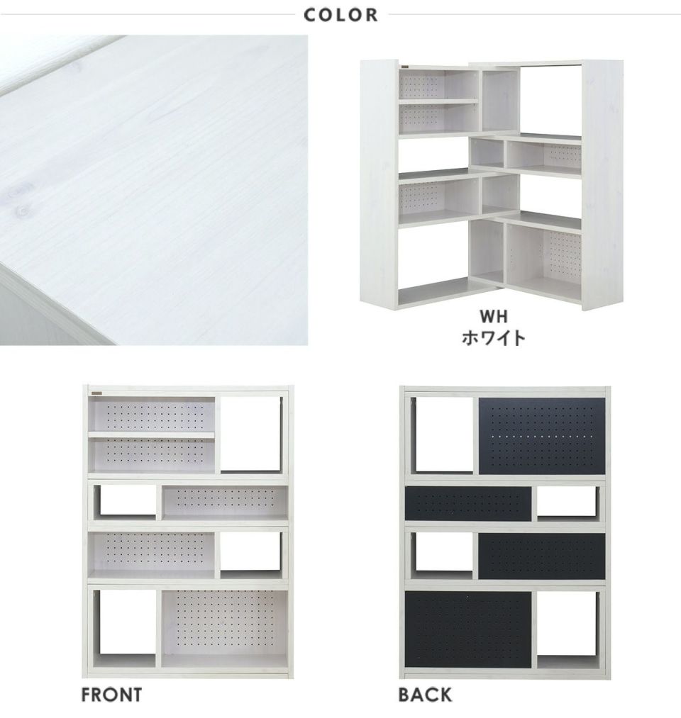 スライドさせて、伸縮・回転できる、オープンラック。 パンチングボードがリバーシブルだから、好きな雰囲気で組み立てて、私らしい、お部屋づくりを。