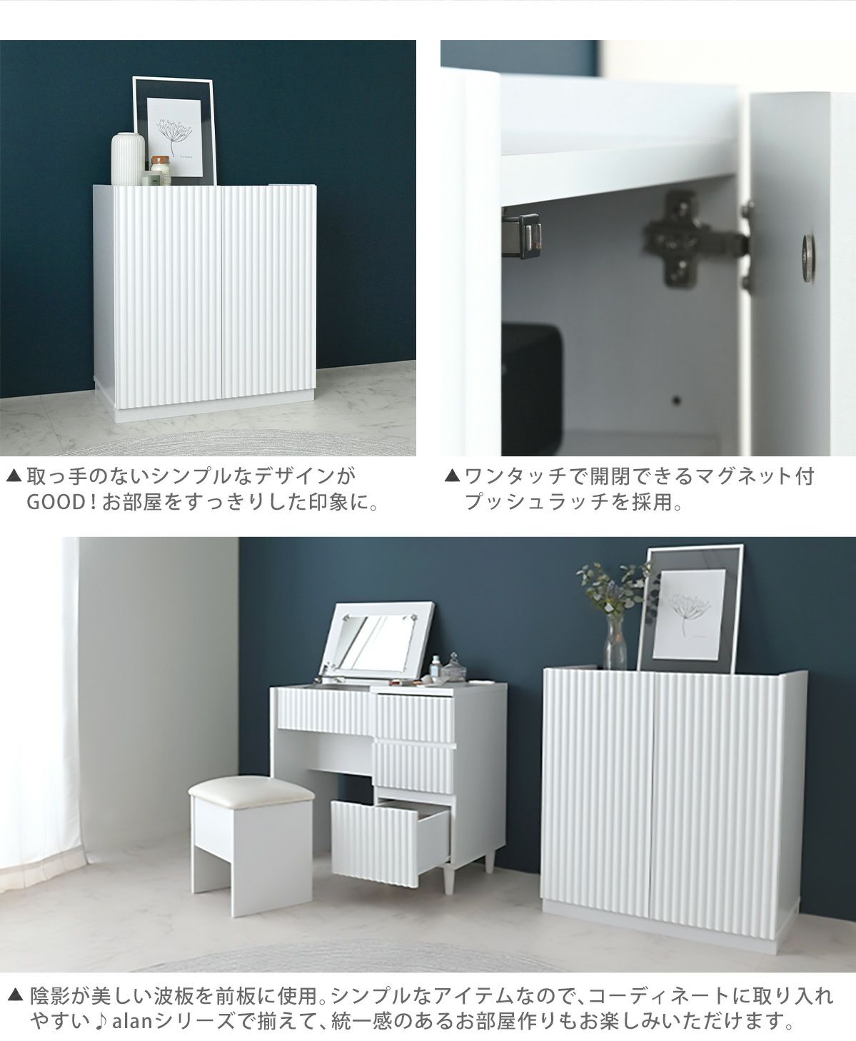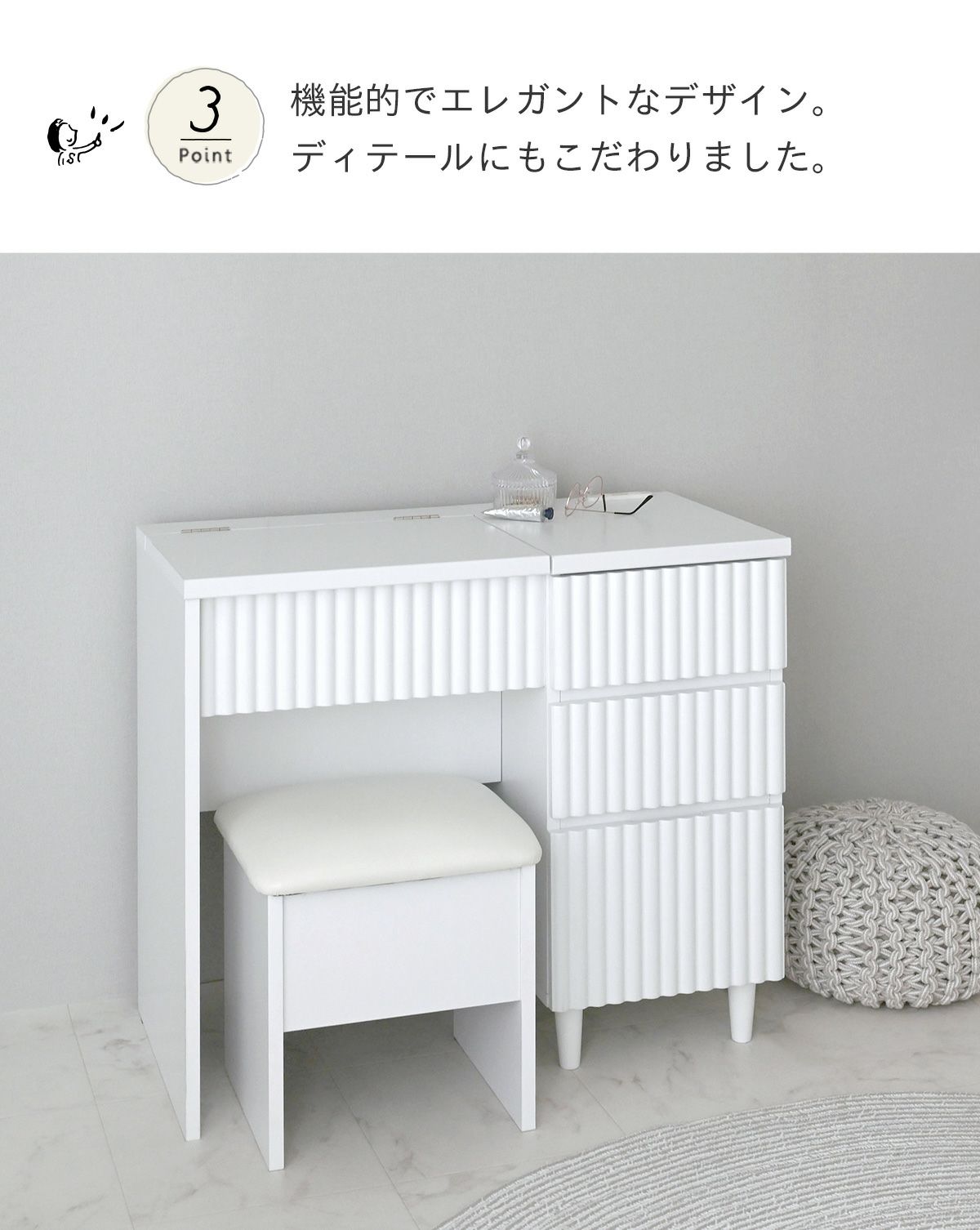 他の画像を見る ドレッサー デスク テーブル コンパクト 韓国 スツール付 北欧 デスクドレッサー かわいい 可愛い スツール デザイン 白 木製 幅80cm 鏡台 コンセント付 alan(アラン) デザインドレッサー ALN70-80D 在庫切れ お気に入りに登録する 当店特別価格 ¥ 34,900 税込 ホワイト