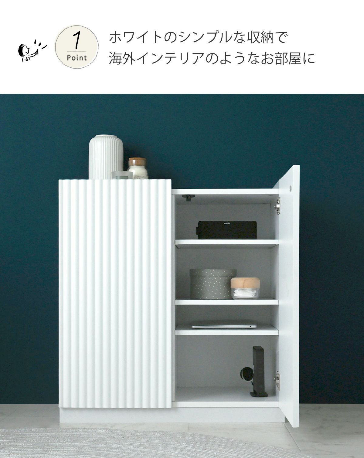 他の画像を見る キャビネット 白 おしゃれ 韓国 北欧 木製 幅72 収納 リビングボード 引き出し リビング収納 チェスト デザイン シンプル 大容量 コード穴 ホワイト リビング 棚 alan(アラン) デザインキャビネット ALN77-72C お気に入りに登録する 当店特別価格 ¥ 32,900 税込 ホワイト