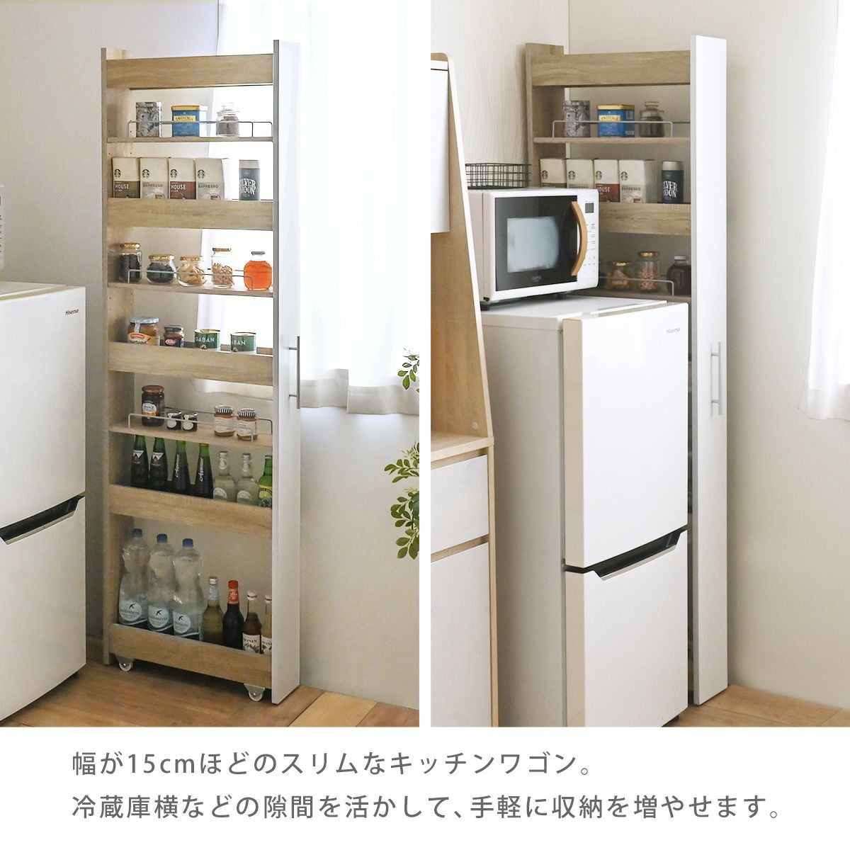 他の画像を見る 隙間収納 キッチン 高さ85cm ロータイプ 幅15cm スリム 隙間 すき間収納 スリムラック 収納ラック オーク ホワイト おしゃれ シンプル 省スペース キッチン 隙間収納 ロータイプ JS85-15SS お気に入りに登録する 当店特別価格 ¥ 6,990 税込 ホワイト