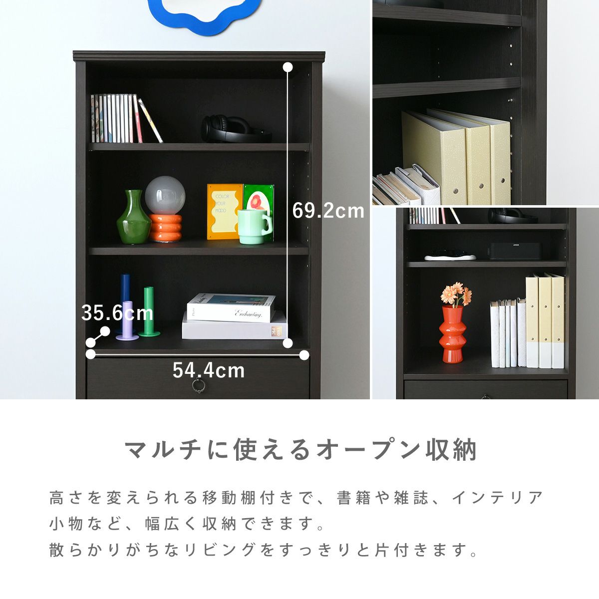 他の画像を見る シェルフ オープンラック おしゃれ ミッドセンチュリー 収納 本棚 ディスプレイ 棚 可動棚 飾り棚 リビング 60cm 幅60 木製 収納 引き出し シンプル ブラウン 茶色 カシュ シェルフ CSH-105-60S お気に入りに登録する 当店特別価格 ¥ 21,990 税込 NEW ブラウン