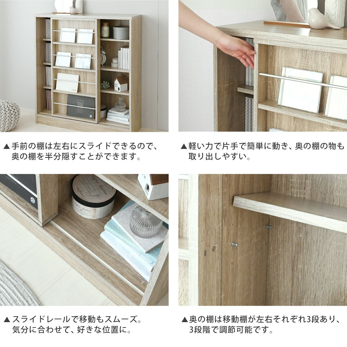 他の画像を見る 本棚 幅90cm 大容量 おしゃれ 隠す収納 スライド本棚 スライド式 書棚 収納棚 木製 コミックラック CDラック DVD収納 漫画 文庫本 シンプル 北欧 リビング スライド本棚 JS85-90OP お気に入りに登録する 当店特別価格 ¥ 9,990 税込 NEW ベージュ