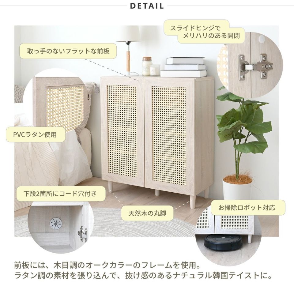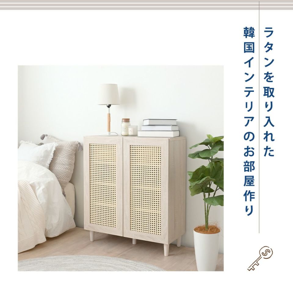 ラタン素材がアクセントのNONIER(ノニエ)シリーズ。リビングやキッチンでも活躍するシンプルな扉収納。