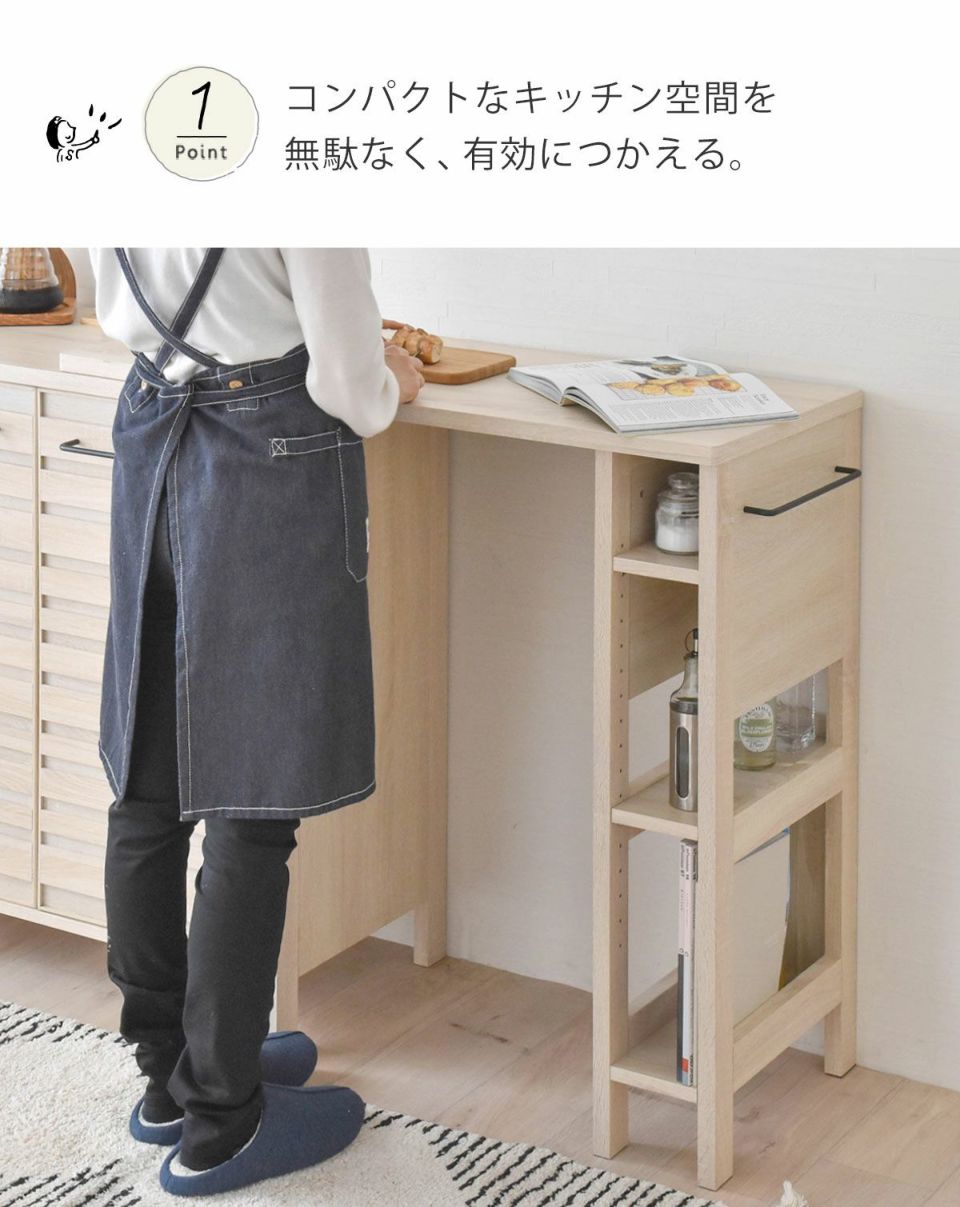 LAFIKA(ラフィカ)シリーズのカウンタータイプ対応の乗せるだけオプションテーブル。デッドスペースになりがちなゴミ箱上も有効活用できて、右でも左でも設置ができます。収納スペースと作業スペースを場所に合わせて調節できるのがGood。ホワイトインテリアや北欧インテリア、ナチュラルテイストがお好きな方におすすめ。