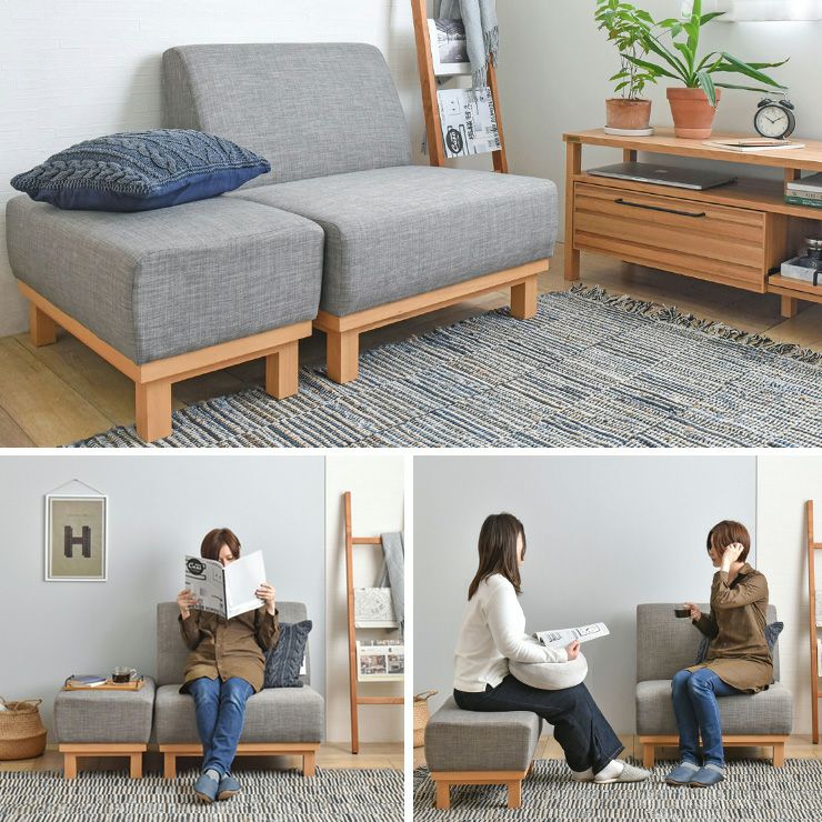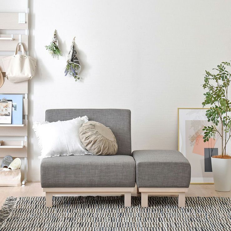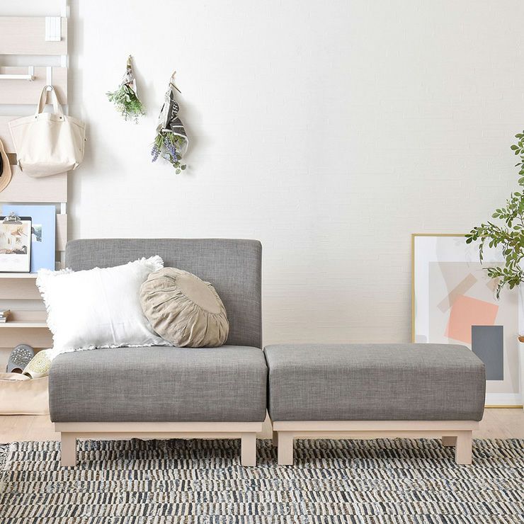 オットマンをサイドテーブルのように使ったり、ソファ前においてカウチソファのように。また、オットマンも大きめの作りなので、セパレートして2人掛けのようにレイアウトすると友達が来た時などにもゆったり過ごしていただけます。絶妙なサイズ感が自由度をあげてくれるソファです。