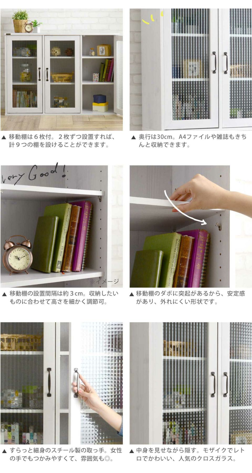 クロスガラスが印象的なガラスキャビネット。別売の下置きもあり、組み合わせできる収納キャビネット。