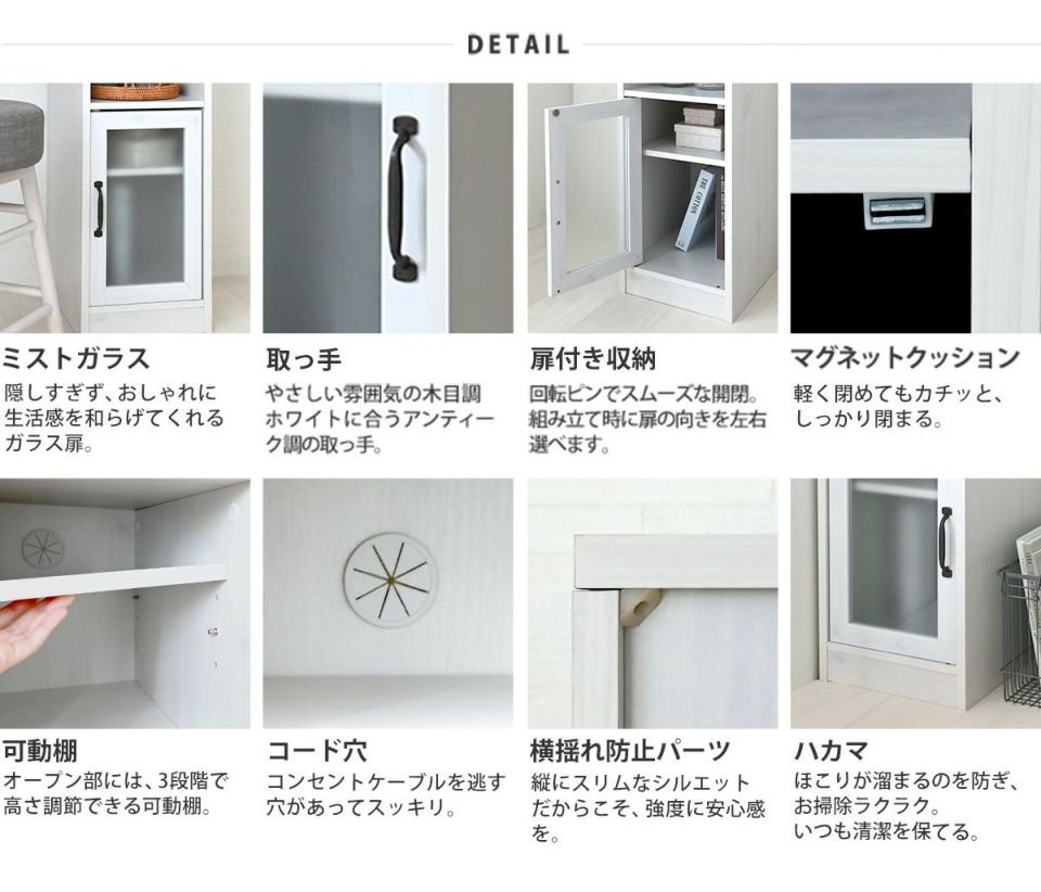 シンプルなデザインなので、キッチン収納だけでなく玄関収納や電話台としても、場所を選ばずマルチに使いやすい。