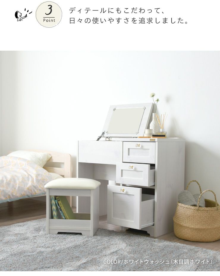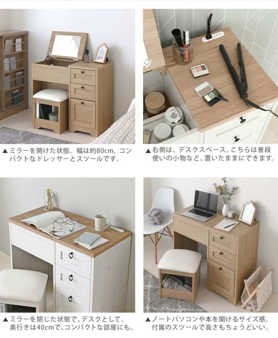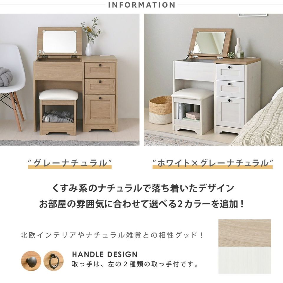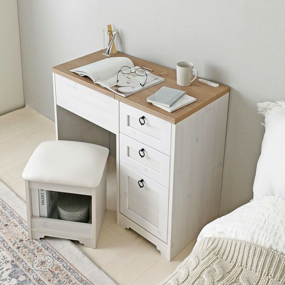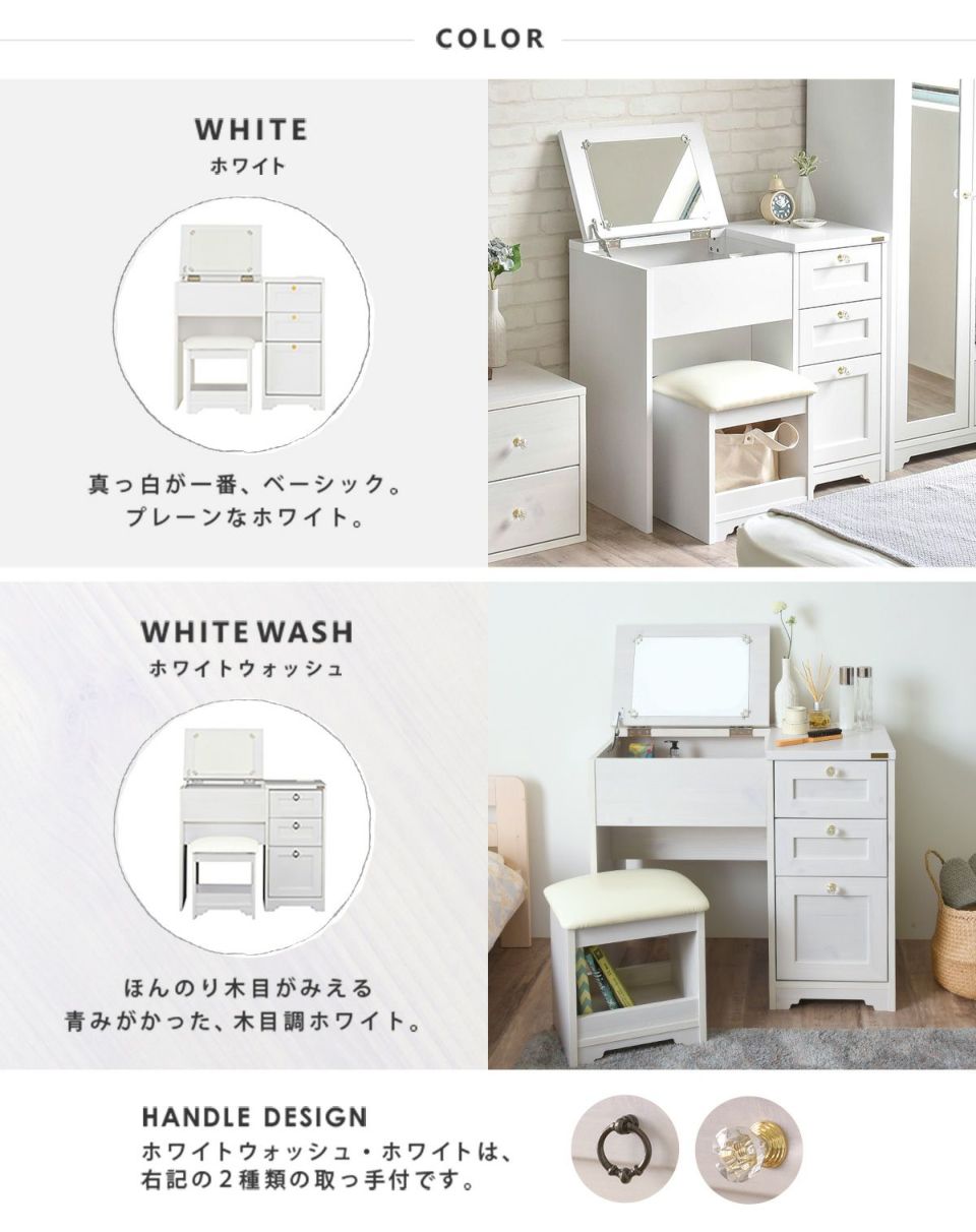 SESAMEロングセラーの、コンパクトタイプの取っ手2種類付で選べるデスクドレッサー。クッション性の高いスツール付が便利。真っ白なホワイトや限定カラーの「うっすら木目がみえる」ホワイトウォッシュをはじめ、韓国インテリアや北欧インテリア、ヴィンテージにもピッタリなカラーを展開。