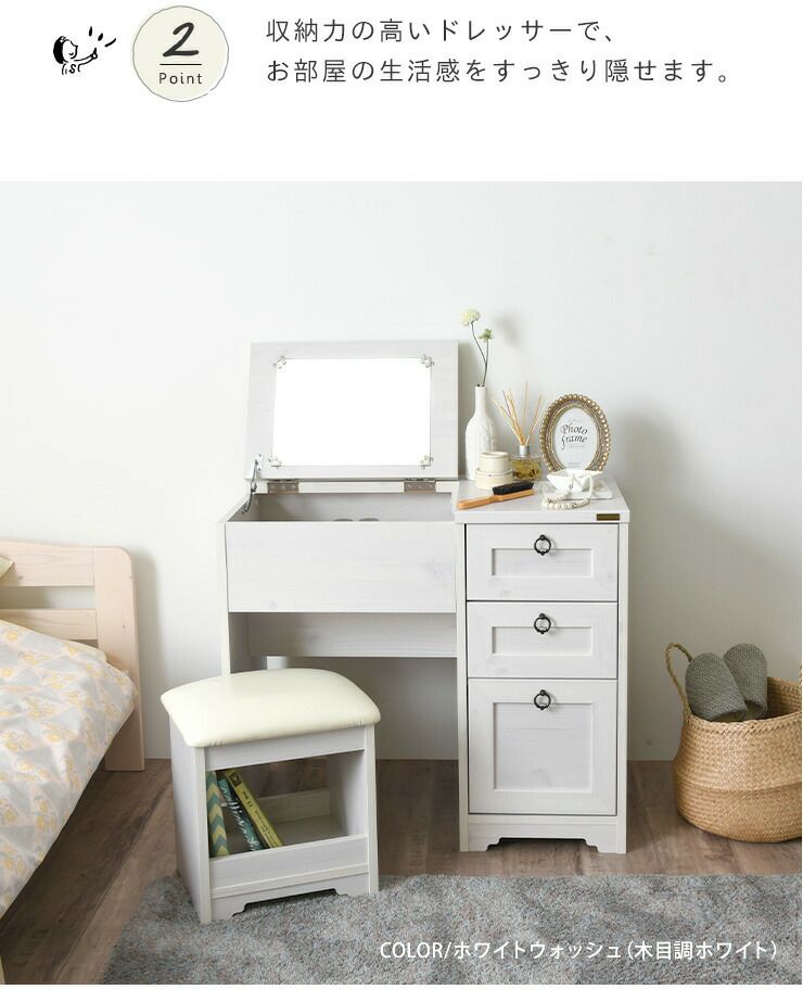 アンリ デスクドレッサー ANK70-80D【完成品タイプ】