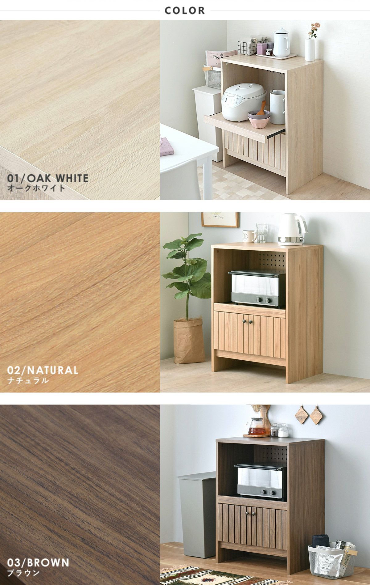 他の画像を見る レンジ台 レンジボード 60幅 キッチンボード コンパクト カウンター キッチン収納 北欧 キッチンカウンター 食器棚 一人暮らし シンプル ナチュラル かわいい おしゃれ オーク ブラウン スリム TIFFY レンジボード TF80-60R お気に入りに登録する 当店特別価格 ¥ 13,900 税込 ナチュラル ベージュ ブラウン