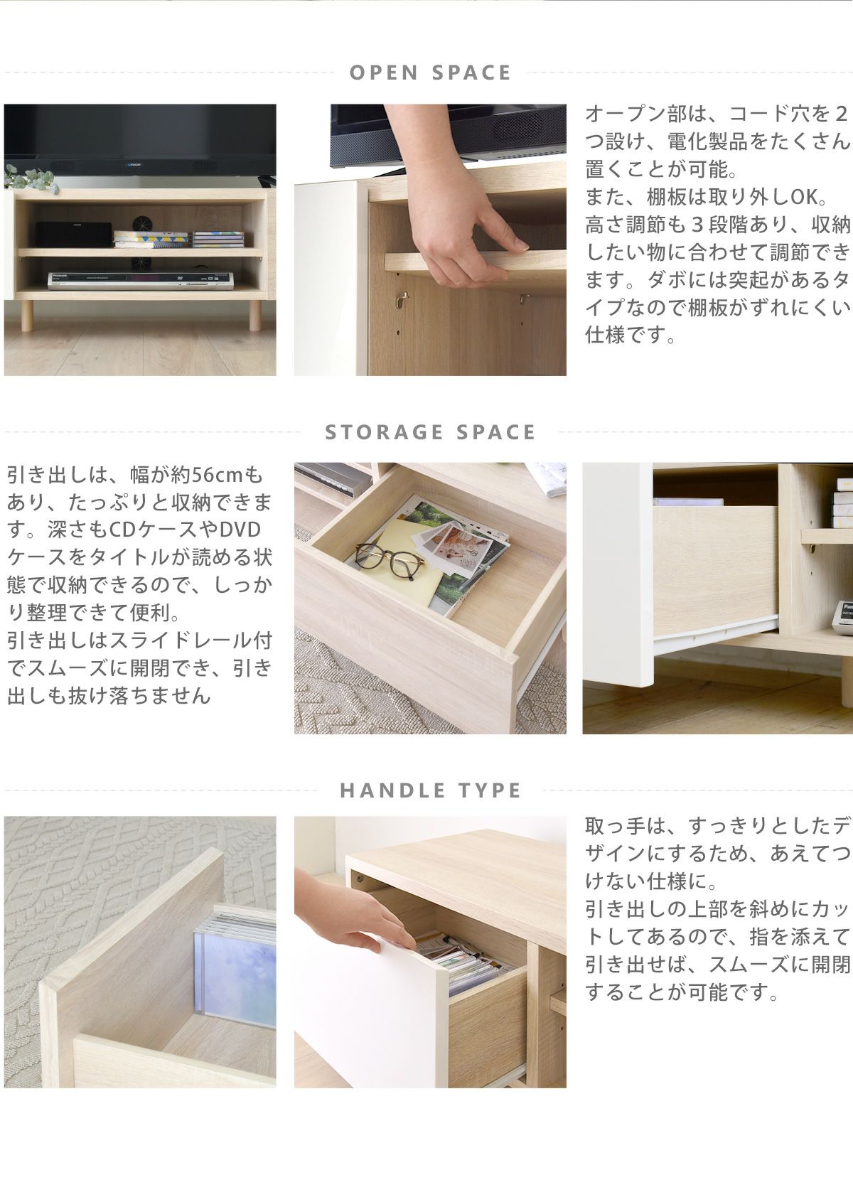 他の画像を見る テレビ台 ローボード 北欧 白 ホワイト 木目 ナチュラル ブラウン 幅 120 かわいい おしゃれ シンプル テレビボード TV台 TVボード 鏡面 引き出し付 シンプル 収納 木製 32インチ テレビ台 ローボード 幅120cm <HELM/HM35-120L> お気に入りに登録する 当店特別価格 ¥ 19,900 税込 ホワイト ベージュ ブラウン