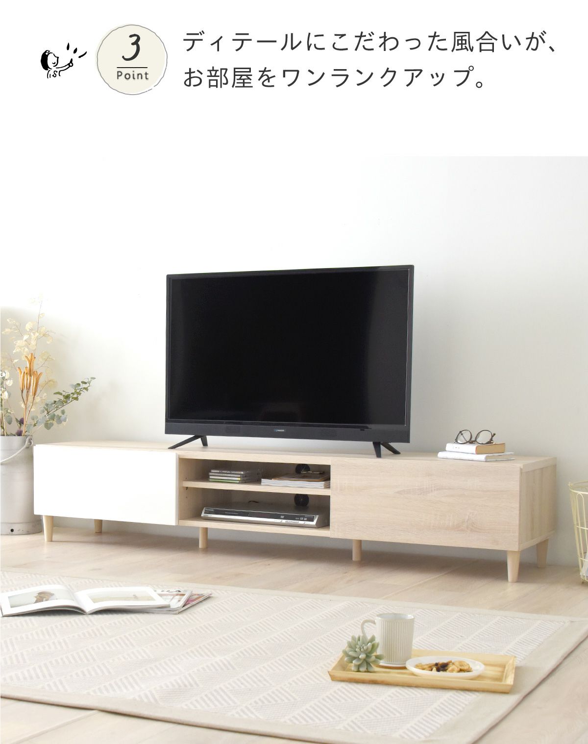 他の画像を見る テレビ台 ローボード 北欧 白 ホワイト 鏡面 木目 ナチュラル ブラウン 幅 180 かわいい おしゃれ シンプル テレビボード TV台 TVボード 引き出し付 収納 木製 65インチ 大型テレビ対応 テレビ台 ローボード 幅180cm <HELM/HM35-180L> お気に入りに登録する 当店特別価格 ¥ 26,900 税込 ホワイト ベージュ ブラウン