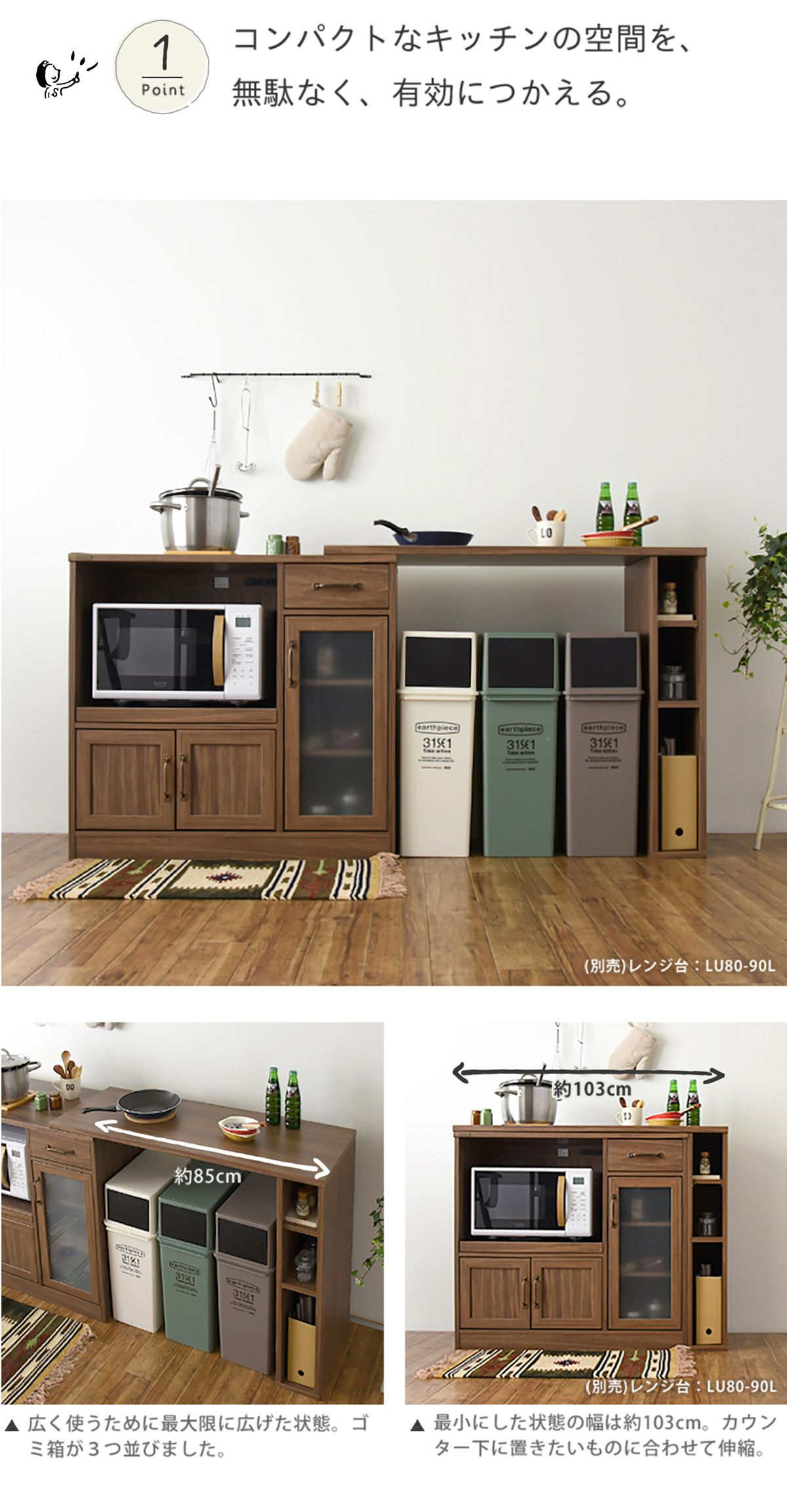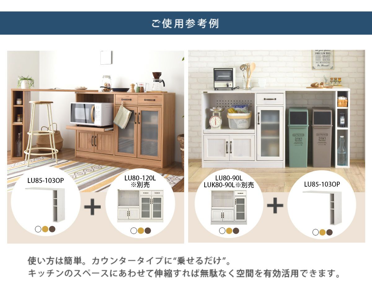 他の画像を見る キッチンカウンター ゴミ箱 上 ラック カウンターテーブル 単品 カウンター下収納 レンジ台 キッチン収納 シンプル おしゃれ 北欧 コンパクト 棚 作業台 キッチン 一人暮らし LUFFY(ラフィ)レンジ台専用 オンテーブル 伸縮ラック<FFLU85-103OP> お気に入りに登録する 当店特別価格 ¥ 9,990 税込 ホワイト ナチュラル ブラウン