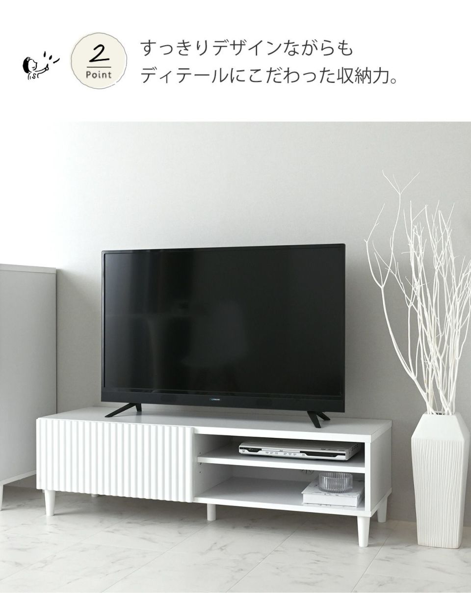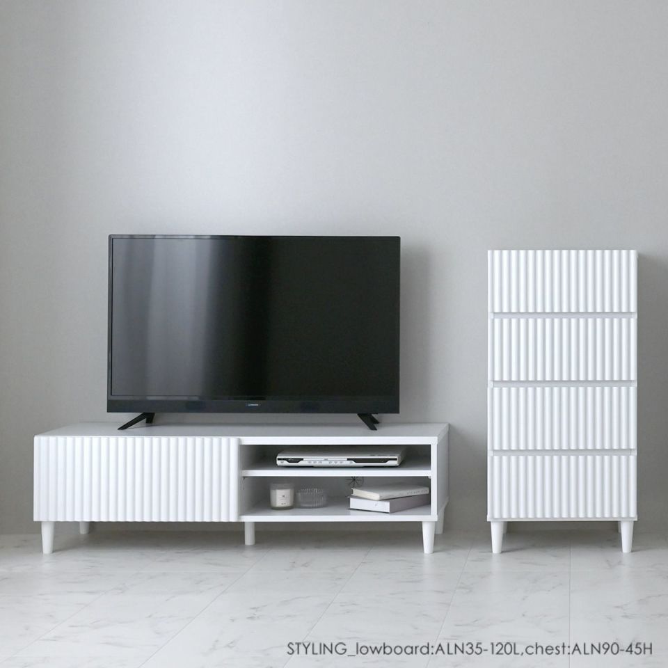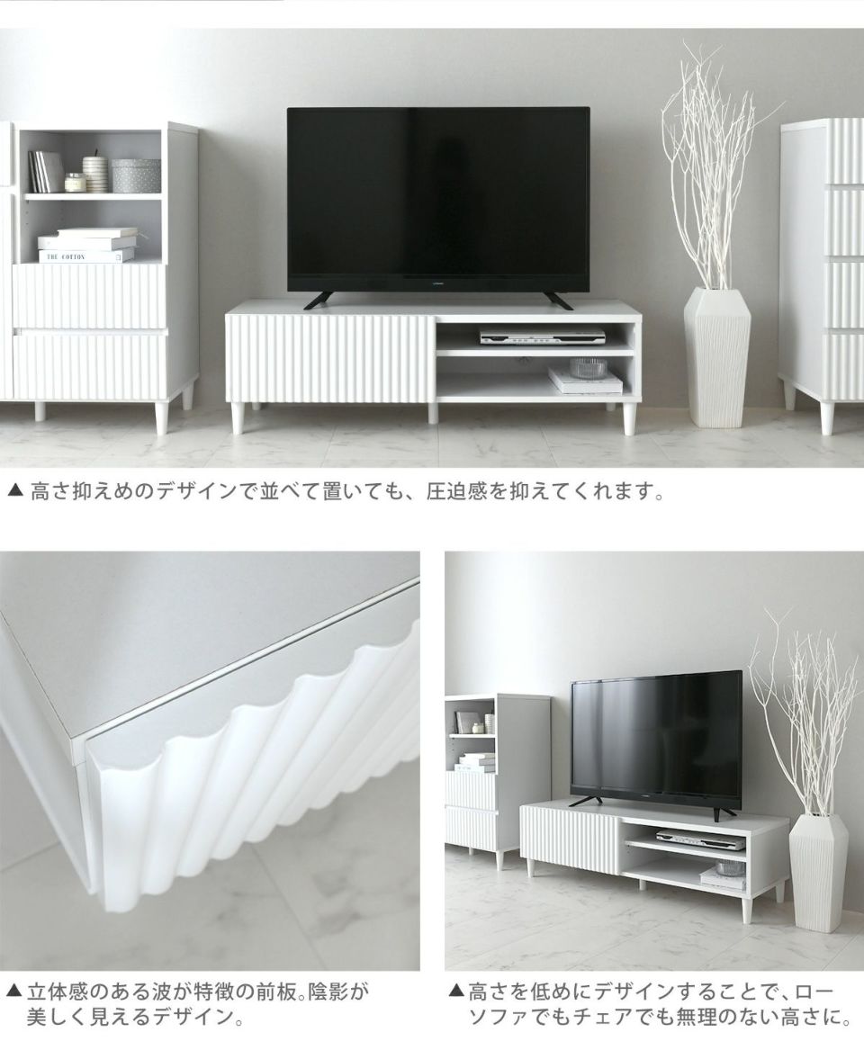 幅は約120cmで、高さが約35cmと低いロータイプは圧迫感が少なく、お部屋を広く見せてくれます。ゲーム機などが置けるオープン棚にはコード穴が二つあり、コードを逃して使用できます。DVDやA4サイズの紙類などを隠して収納できる引き出しはスライドレール付きで開閉がスムーズです。40V型までのテレビに対応。リビングがすっきり片付くテレビ台です。