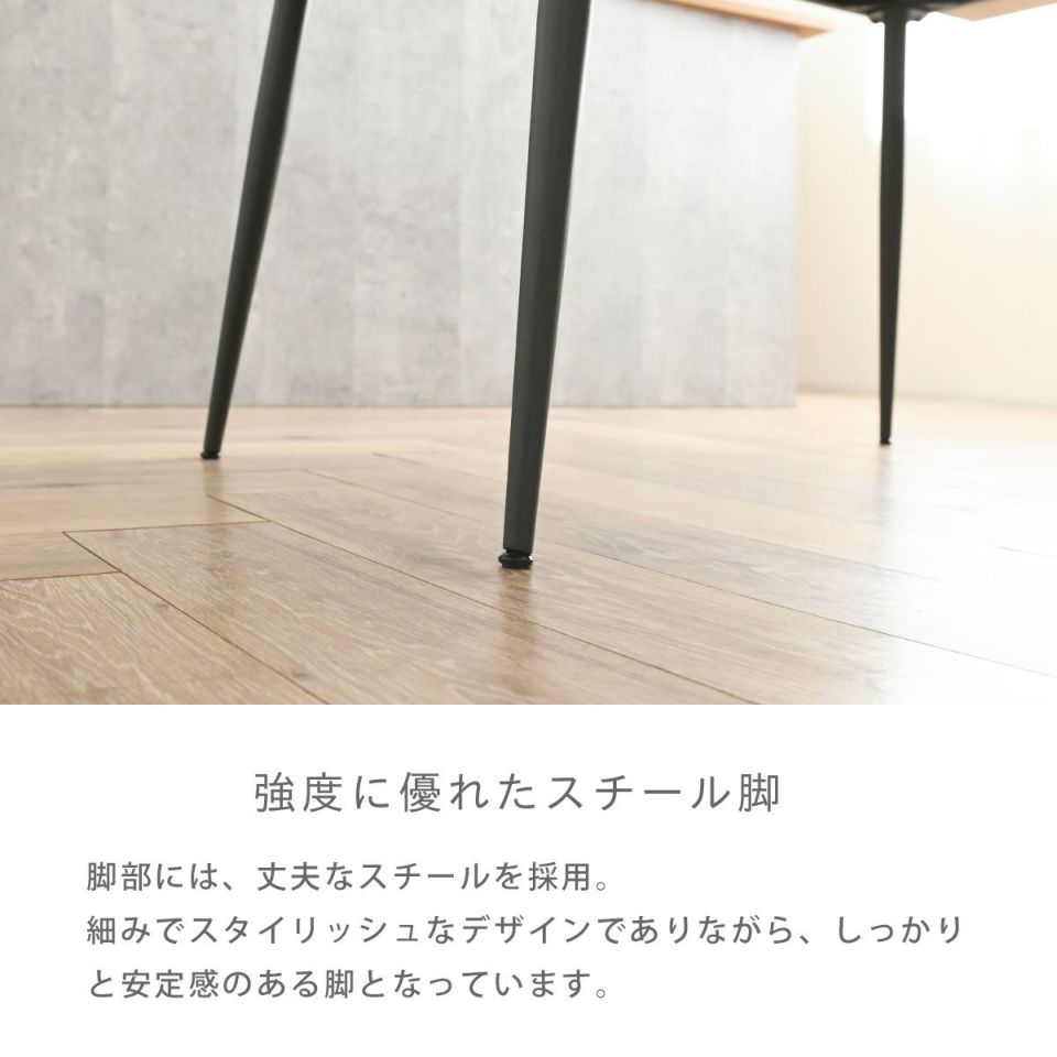 すっきりと洗練されたデザインがおしゃれなダイニングテーブルです。伸長式のテーブルとなっており、二人暮らしの方はもちろん、テーブルを拡張すれば6人までお使いいただけます。天板の拡張も簡単にできるので一人でもセッティングがしやすく、天板にはメラミンを使用しているのでお手入れも簡単です。脚部にはアジャスターがついているのでがたつきなく快適にお使いいただくことができ、シンプルなデザインがお部屋になじみます。
