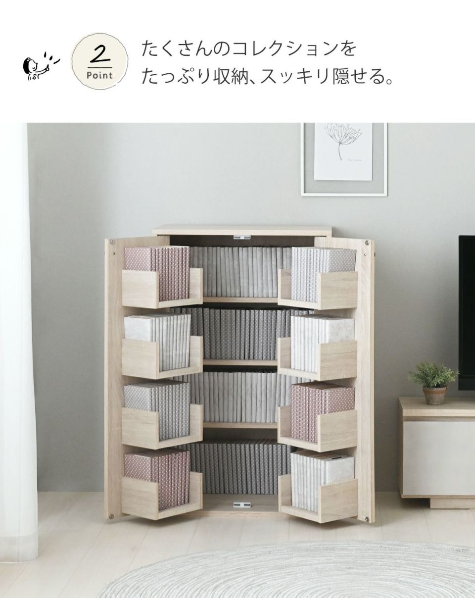 扉を開くと圧巻の収納スペース。コミック・DVD・CDも余裕の大容量。