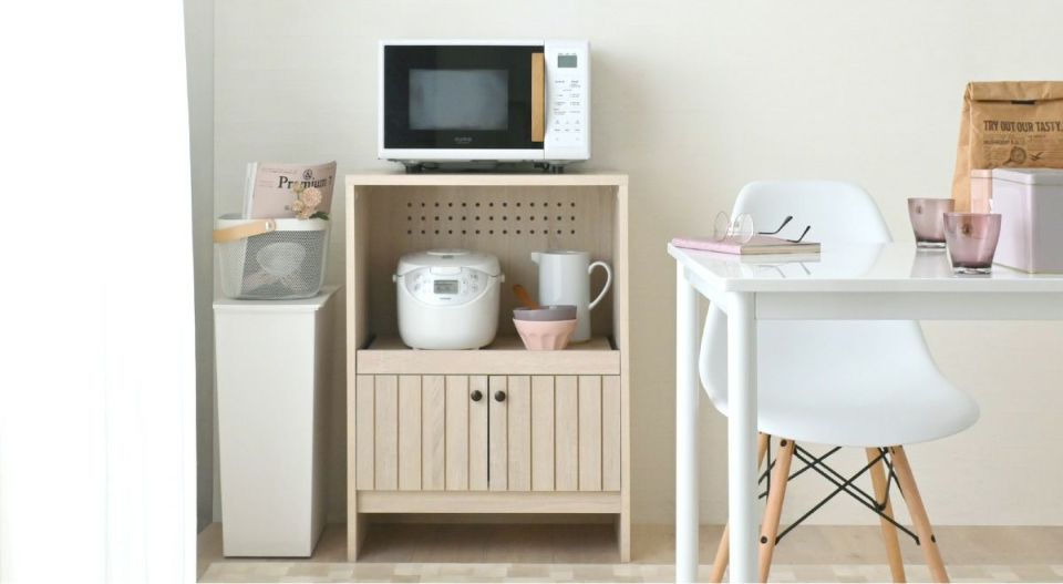 キッチンに省スペースで置けるレンジ台。シンプルなデザインなキッチン収納が欲しい。そんな方にぴったりなレンジ台。シンプルだけど、ちょっとしたこだわりがちりばめられたデザインです。ローボードやキャビネットもあるので、ワンルームを丸ごと同じデザインで合わせられるのも嬉しい。北欧インテリアが好きな方にもおすすめ。