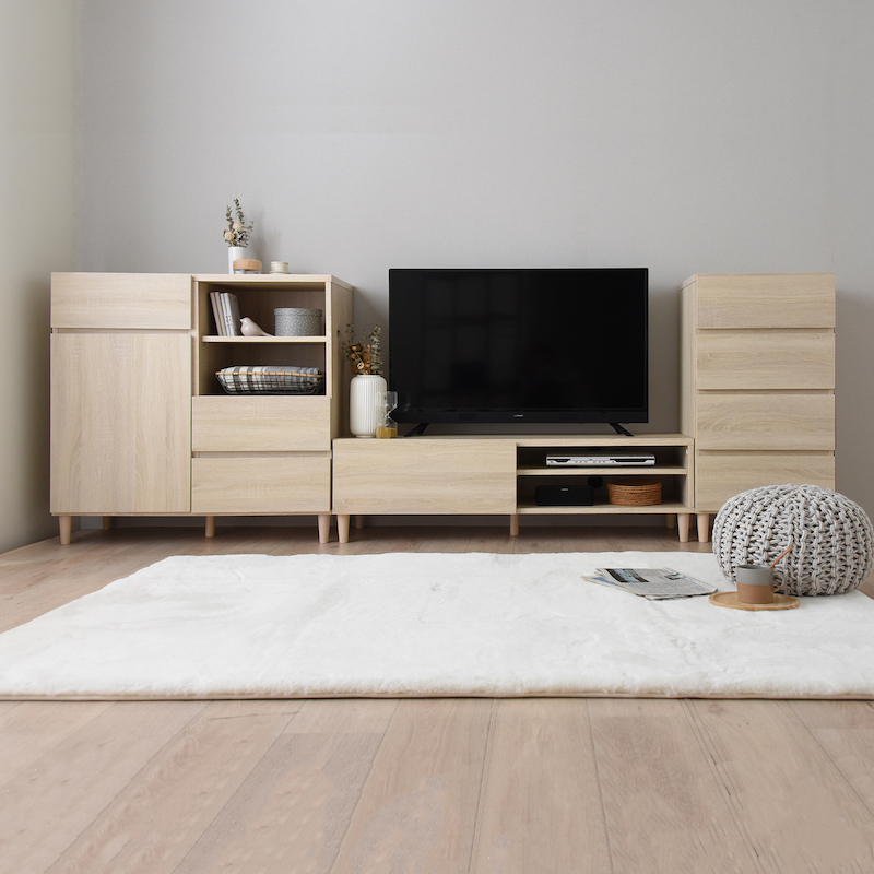 ナチュラルな木目調のデザインはどんなインテリアとも調和し、シンプルながら温かみのある雰囲気を演出。収納不足を解消しながら、暮らしに上質な彩りを添えてくれる万能キャビネットです。