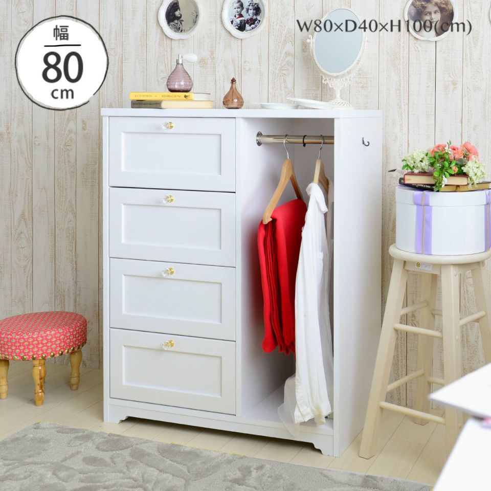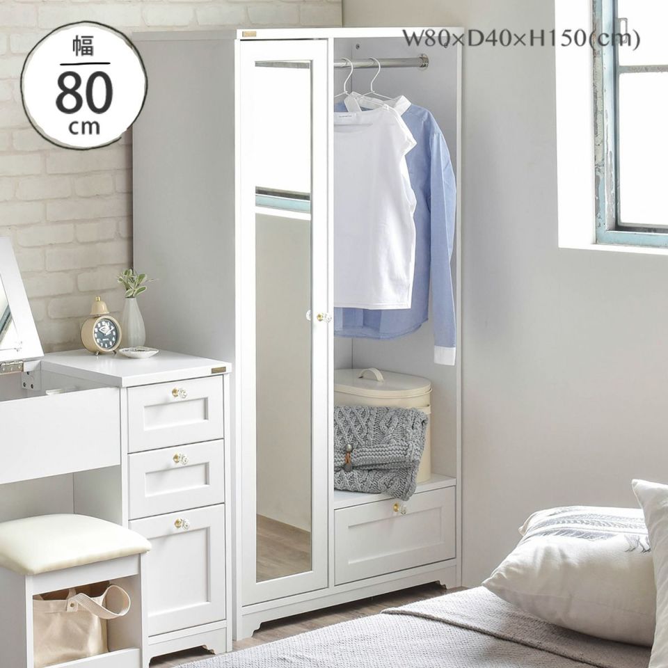 幅80cmと省スペース設計ながら収納力は十分で、収納不足に悩む部屋に心強い味方となるアイテムです。高さをしっかり確保しているため、ロングコートやワンピースなど丈の長い衣類もきれいに掛けられ、シワを防いで整理できます。