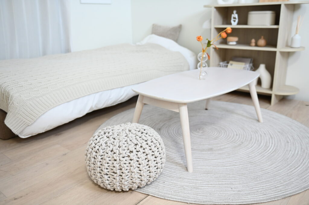 ラグやクッションにはモフッとした柔らかい素材を選ぶと、雰囲気が一気に韓国風へ。