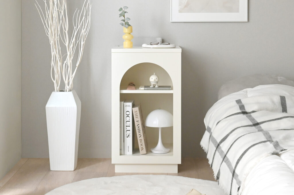 韓国インテリアっぽいコロンとした曲線シルエットと、シンプルで軽やかなデザインで、小さなお部屋にしっくり馴染みます。