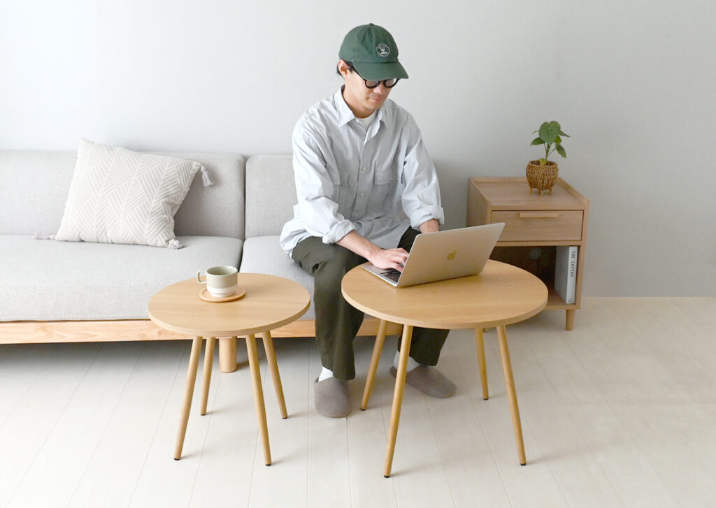 高さの違うテーブルは並べて使ったり、メインテーブルとサイドテーブルとして別々の場所で使い分けることも可能です。