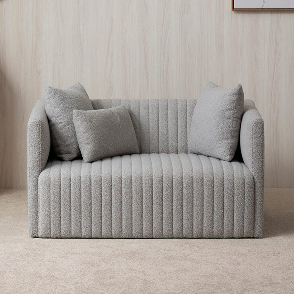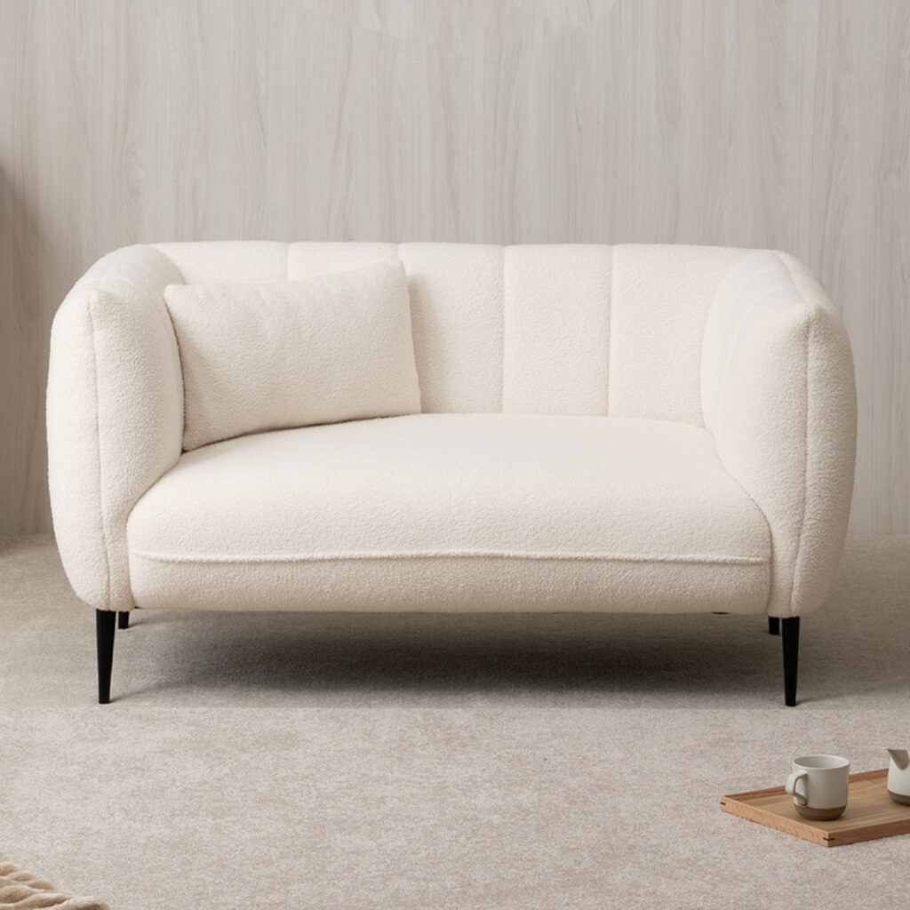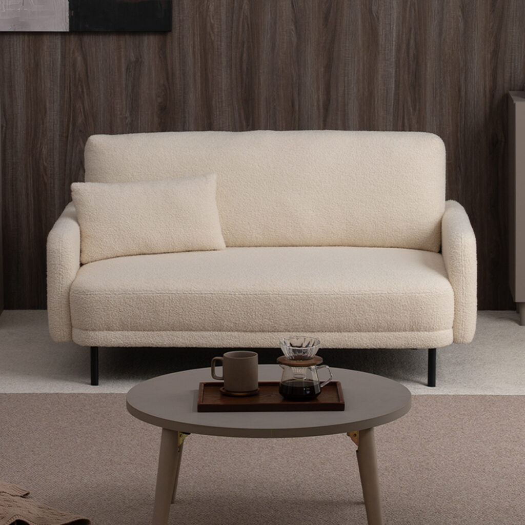 あえて低めに設計した背もたれが空間に余白を演出|シープボア調2Pソファ 4DSS-01-2P