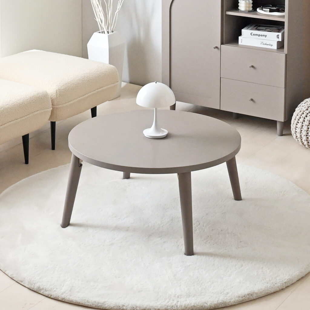 直径70㎝の丸型天板を使用したJELUFIEの円形テーブルは、和モダン・北欧風・韓国風などさまざまなテイストにぴったり。