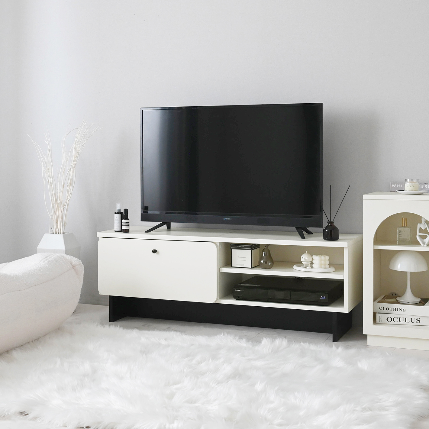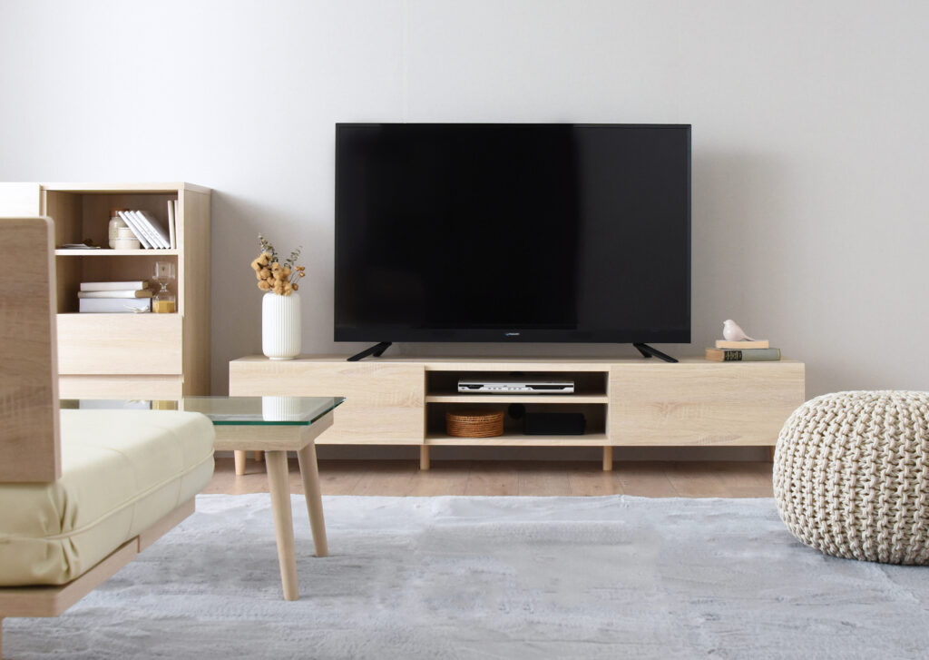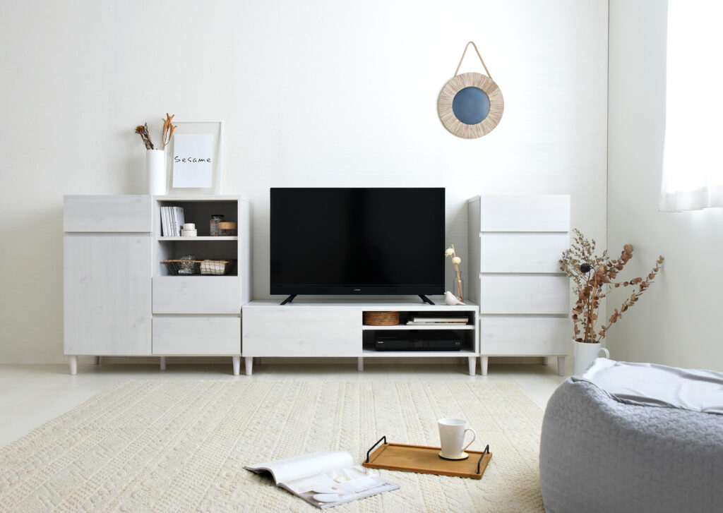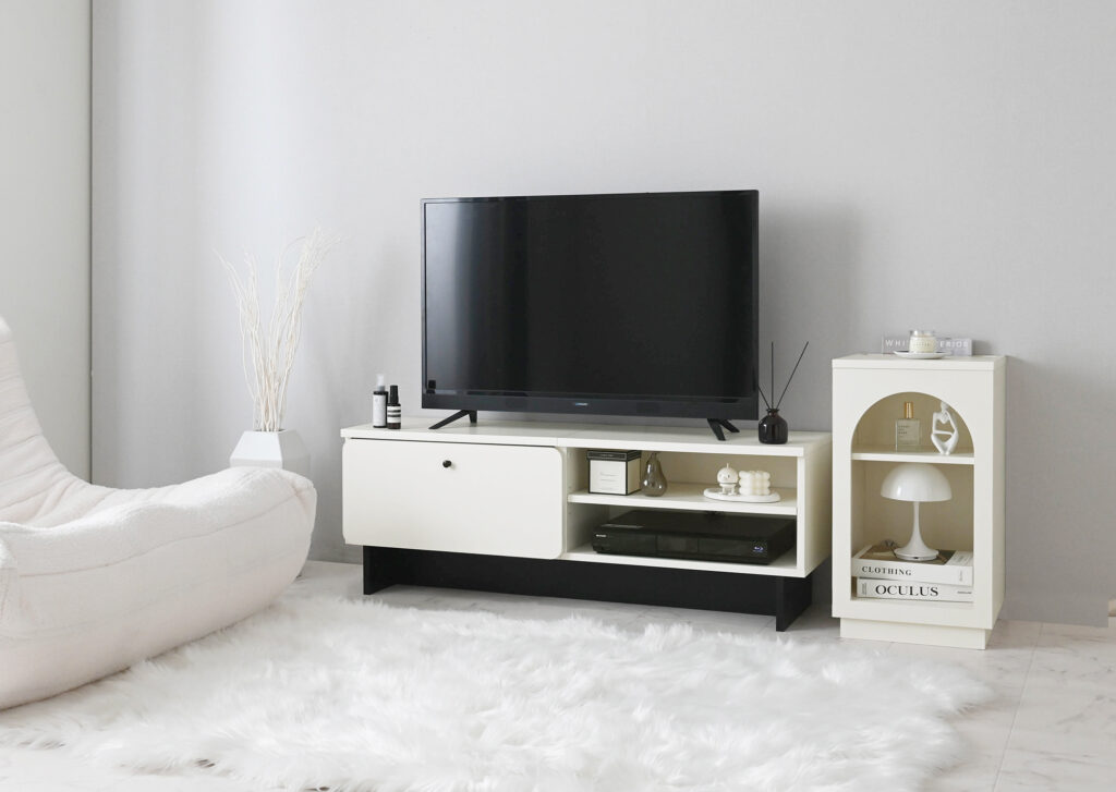 キャビネットと同じく配線を隠す仕様で、部屋をすっきり見せてくれます。