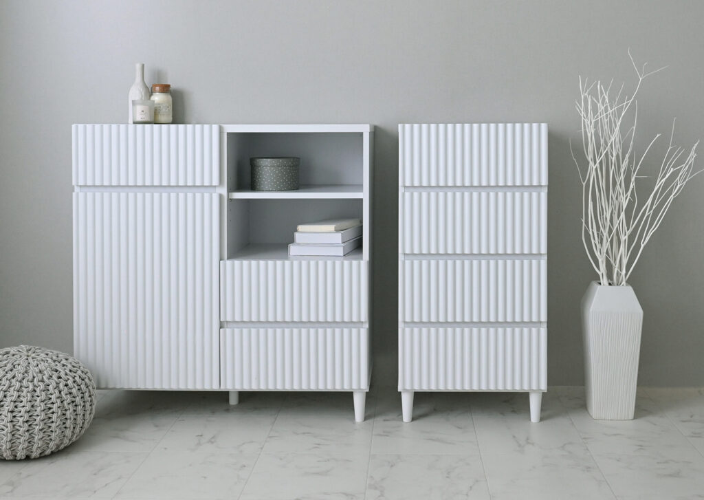 天板から足まで真っ白に仕上がっているキャビネット。
