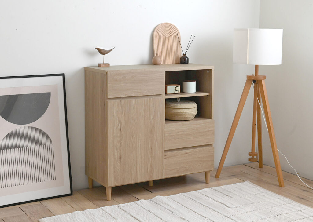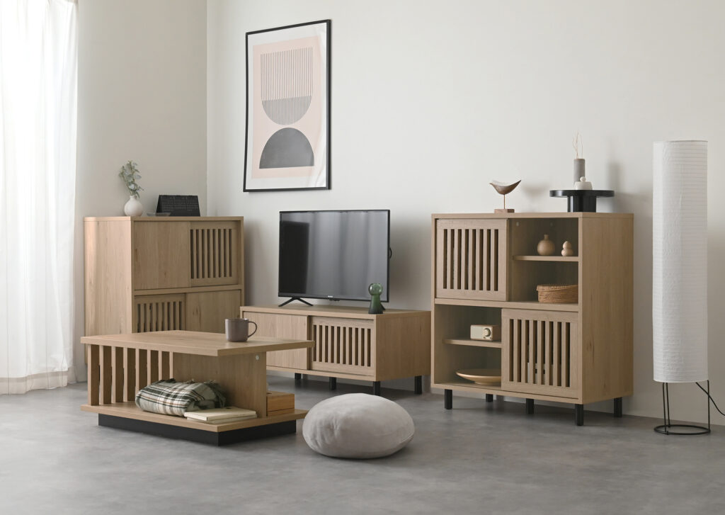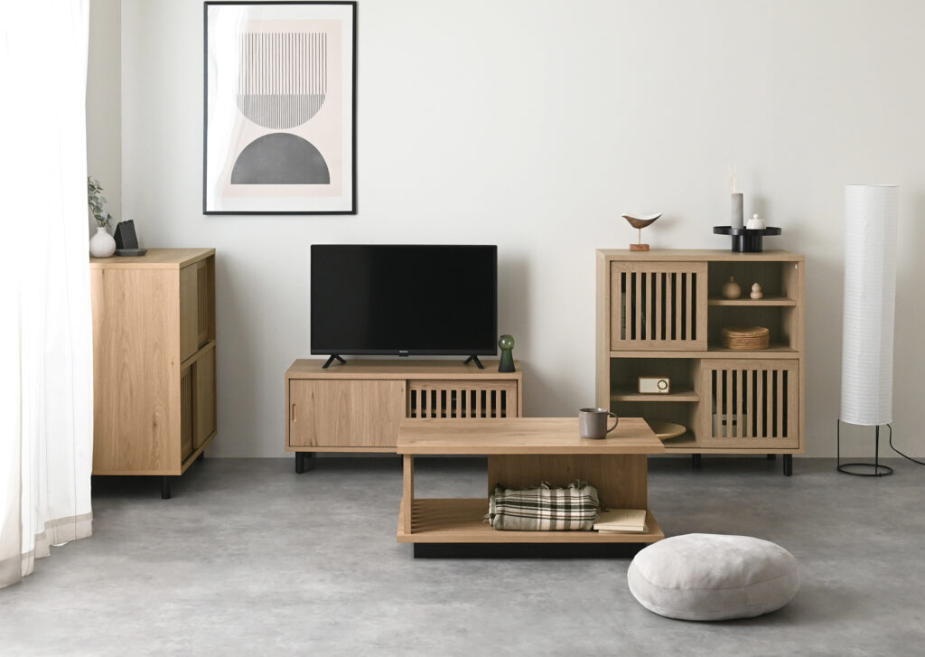 オークホワイトやブラウンなど定番のカラー4つから選ぶことができ、主張しないデザインは北欧・ナチュラルテイストのベースづくりにぴったりです。