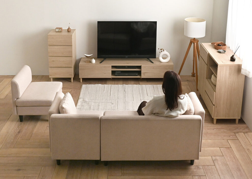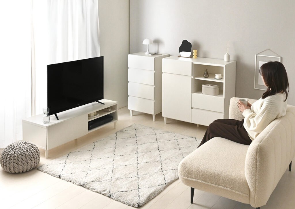キャビネットと組み合わせてリビングに置けば、抜群の収納力で生活感をすっきり隠せます。