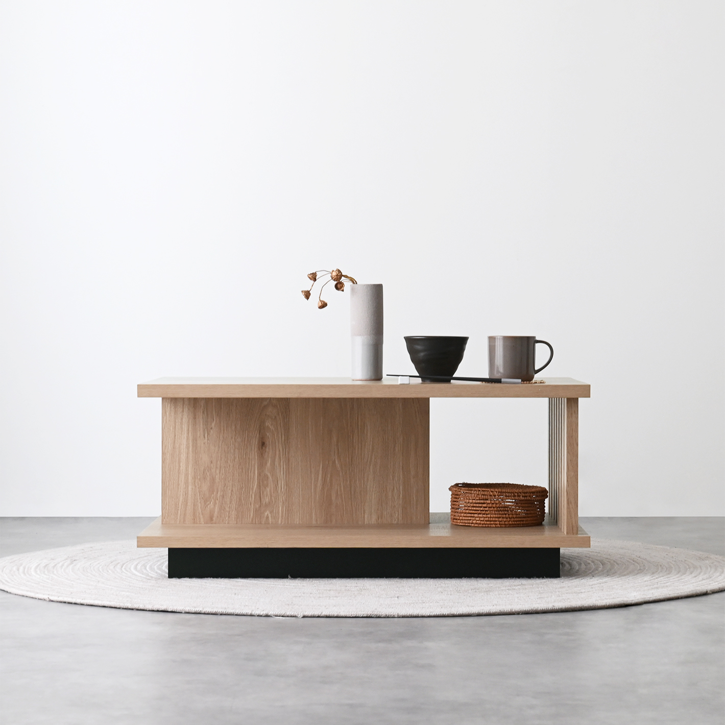 縦格子にブラックの台輪を組み合わせた、よりスタイリッシュな和モダンを演出するセンターテーブル。