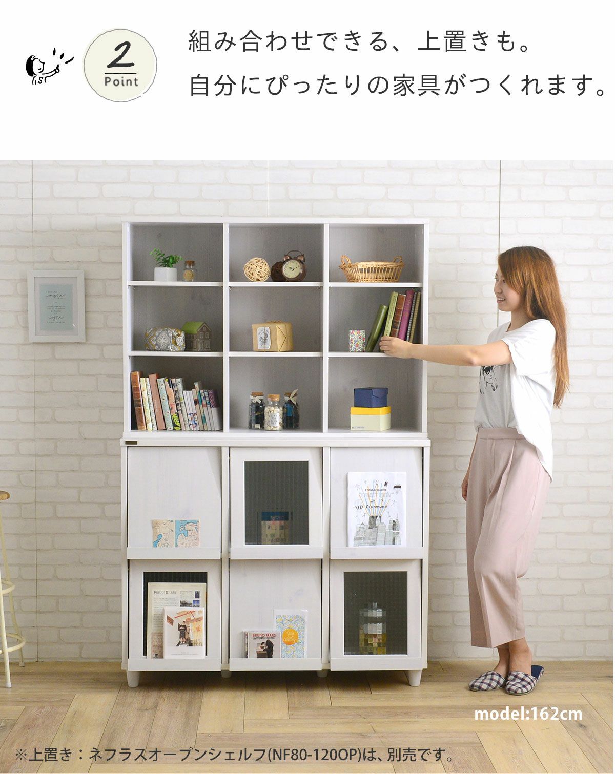 他の画像を見る キャビネット 収納棚 リビング収納 シェルフ 本棚 ガラス 木製 白 ホワイト 北欧 扉付き ブラウン 移動棚 コンパクト 一人暮らし ワンルーム カウンターシェルフ 高さ80 奥行30 NEFLAS(ネフラス) ガラス3枚扉 キャビネット<NEFLAS/NF80-120G> 詳細を見る お気に入りに登録する 当店特別価格 ¥ 24,900 税込 ホワイト ブラウン